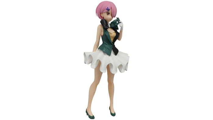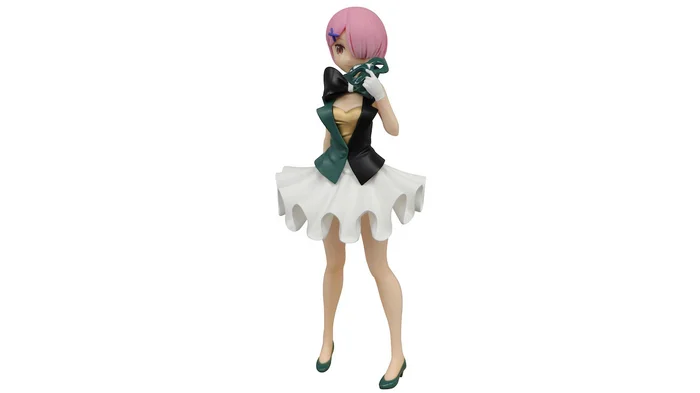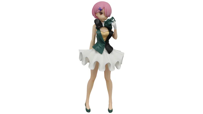 The characters of Re:Zero are performing in a circus! Ram is ready in a festive outfit with a large ruffled skirt and big bowtie! We’re happy she took off her mask so we get an even better look at her lovely smile!