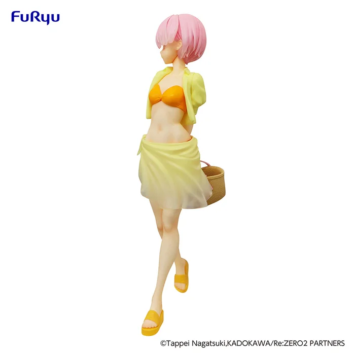 Summer fun with the Roswaal Mansion maids continues in FuRyu’s SSS Figure line of affordable prize figures with this release of Ram! Measuring 8.3″ tall, Ram’s ready for a relaxing summer vacation in a bright swimsuit, short jacket, and sarong skirt as she holds a basket behind her and looks to the side with a hibiscus flower in her hair! Be sure to display her together with