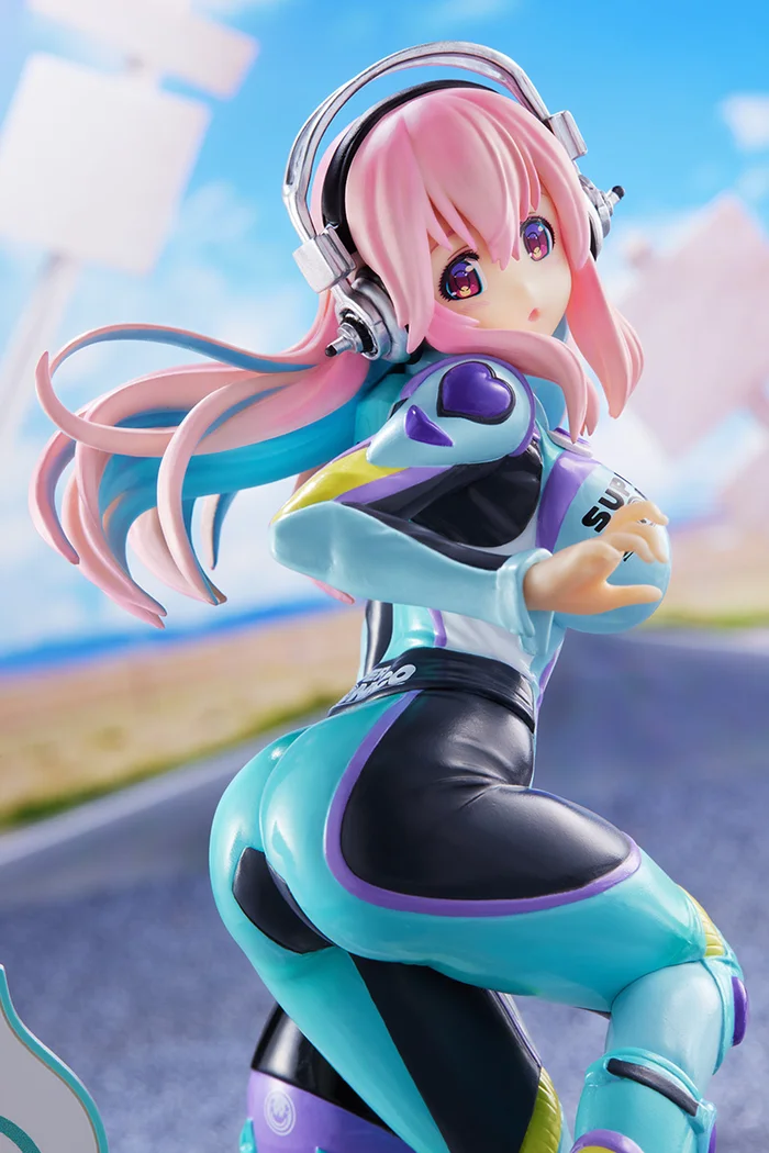 FuRyu’s TENITOL line introduces a new 7.5″ tall figure of Super Sonico! Sonico-chan looks sexy and sleek in a tight sky blue racer outfit. She’s holding her helmet at her side and stands on a base that looks like a piece of road!